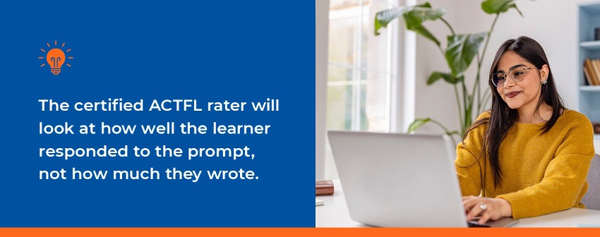 The certified ACTFL rater will look at how well the learner responded to the prompt, not necessarily how much they wrote.