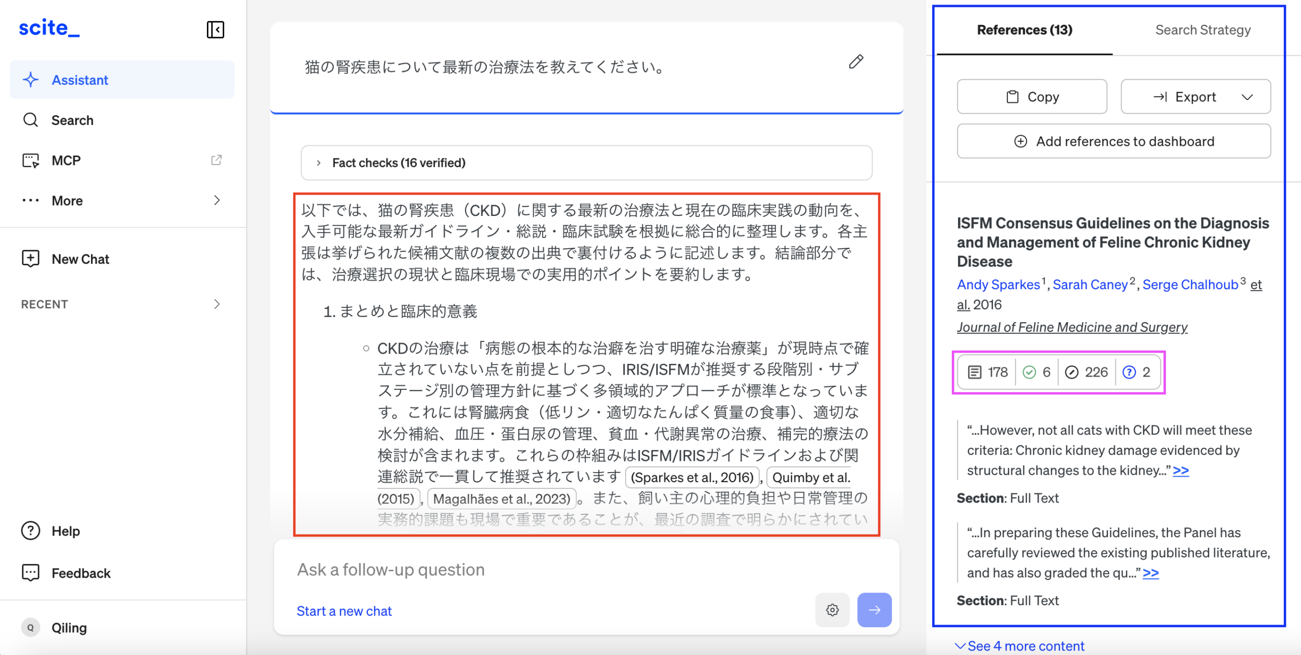 Scite Assistant:質問に対し、エビデンスを伴う回答を提供