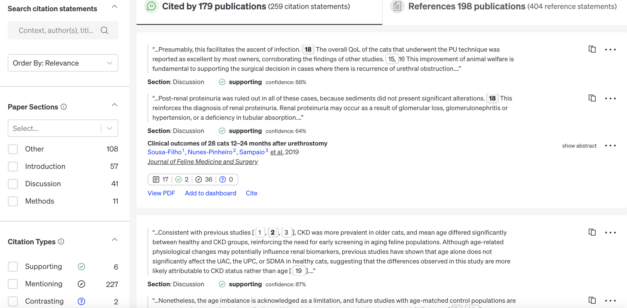 - Supporting(支持):後続の研究によって、その発見や主張が支持・裏付けられている引用。